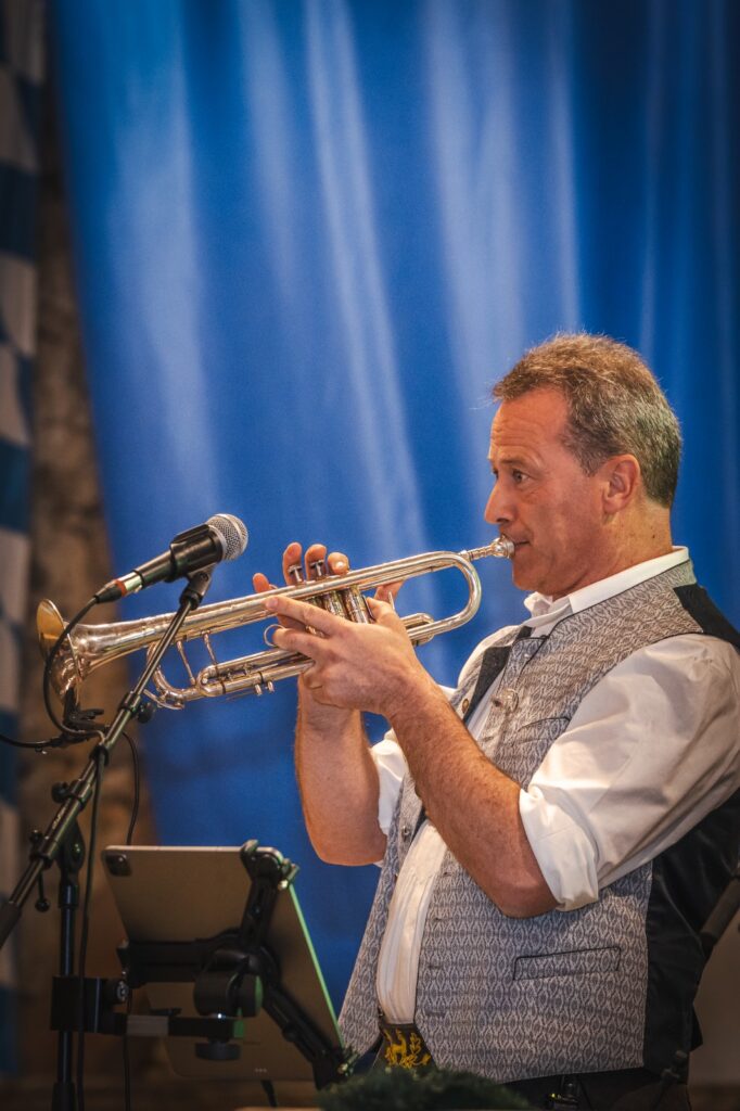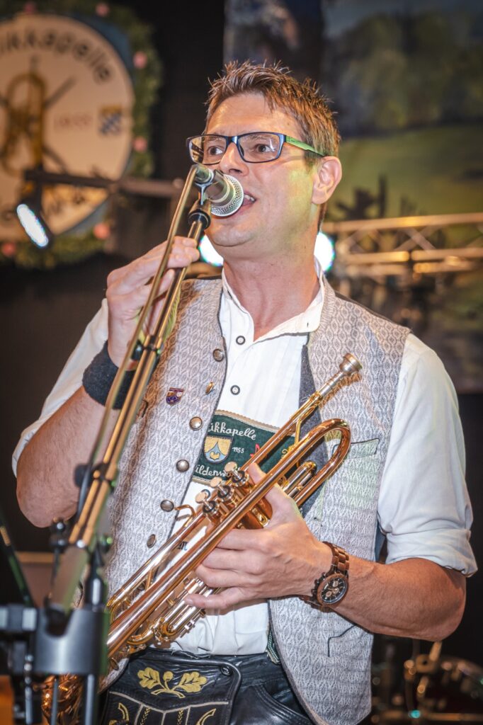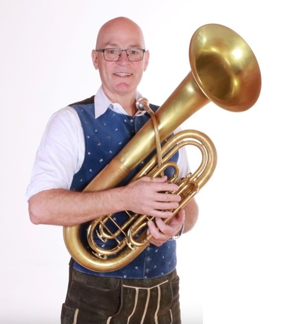 Alpenbeat Markus, weithin bekannt unter dem Spitznamen „da Kare“, ist nicht nur der Sänger und Trompeter der Gruppe, er kümmert sich auch um Termine und Anfragen. Nirgends ist diese Aufgabe besser als bei unserem „Banker“ aufgehoben. Markus ist auch begeisterter Blasmusikant – bei der Musikkapelle Wildenwart. Zu früheren Zeiten spielte er auch schon „Oberkrainer“ bei den Talbach-Buam.